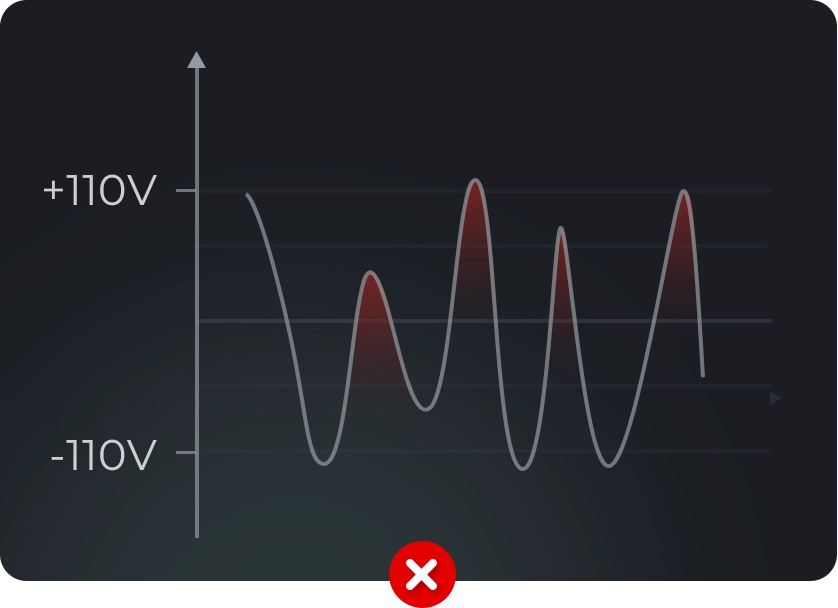 • When used with a corrected sine wave, the deviceis heavily damaged and prone to failure.