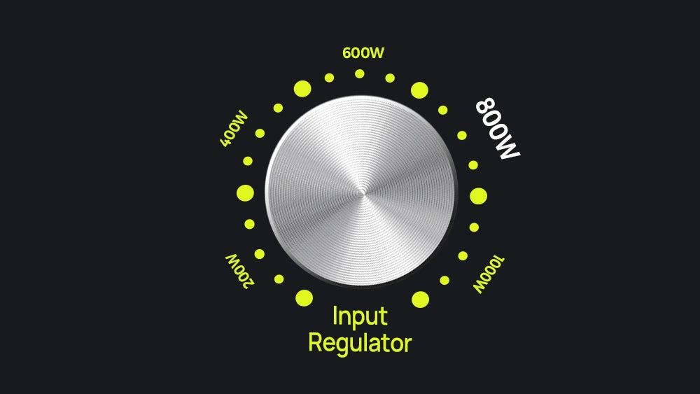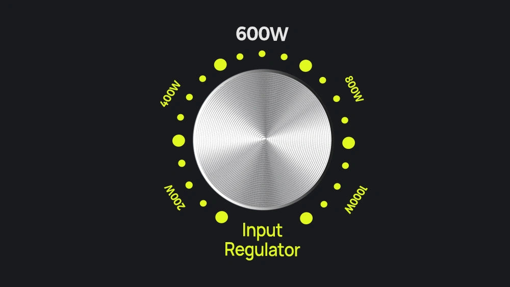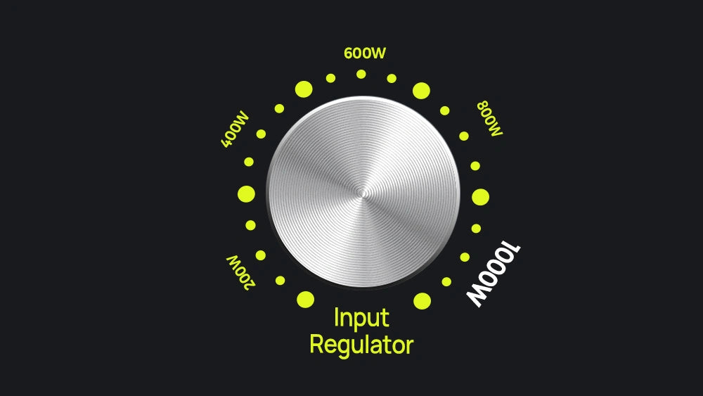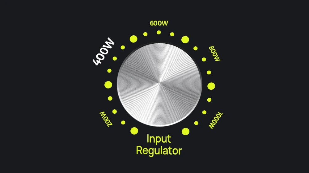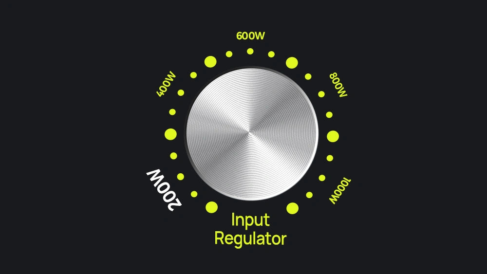 The F1200's adiustable input power (200W to 1000W) with a rotating knob provides fast or slow charging options offering a personalized and efficient device charging experience.