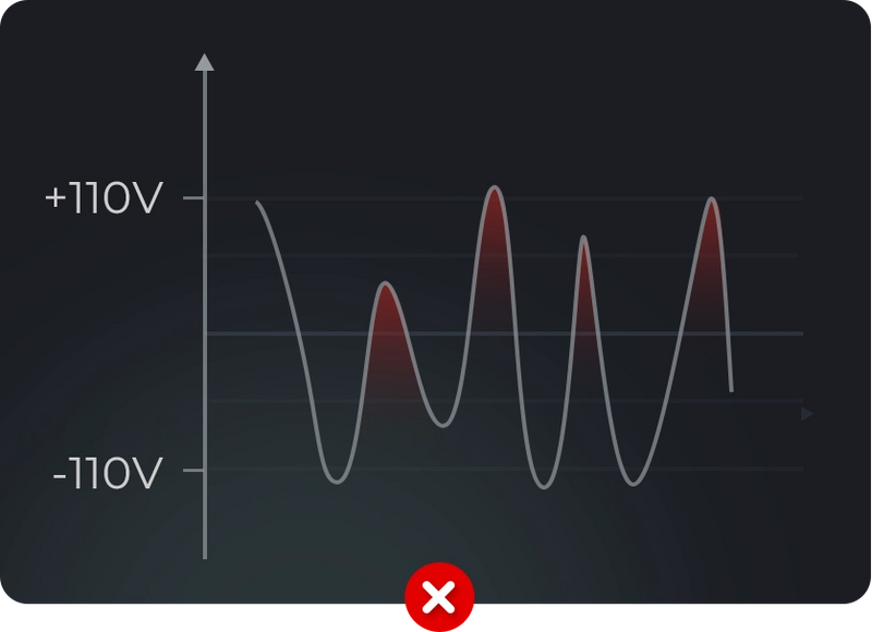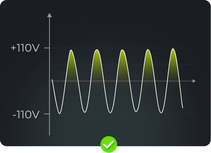 • When used with a corrected sine wave, the deviceis heavily damaged and prone to failure.