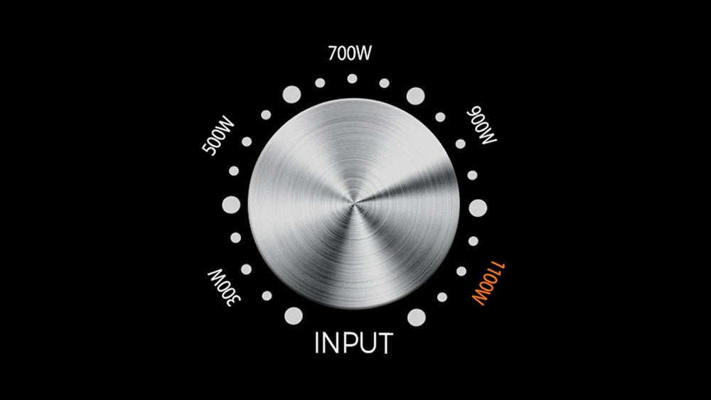 F2400 specially designed a rotating knob for adjusting the input power from 300W to 1100W, which decides the recharging speed. When the voltage is too low, you can also charge the machine by decreasing input power.