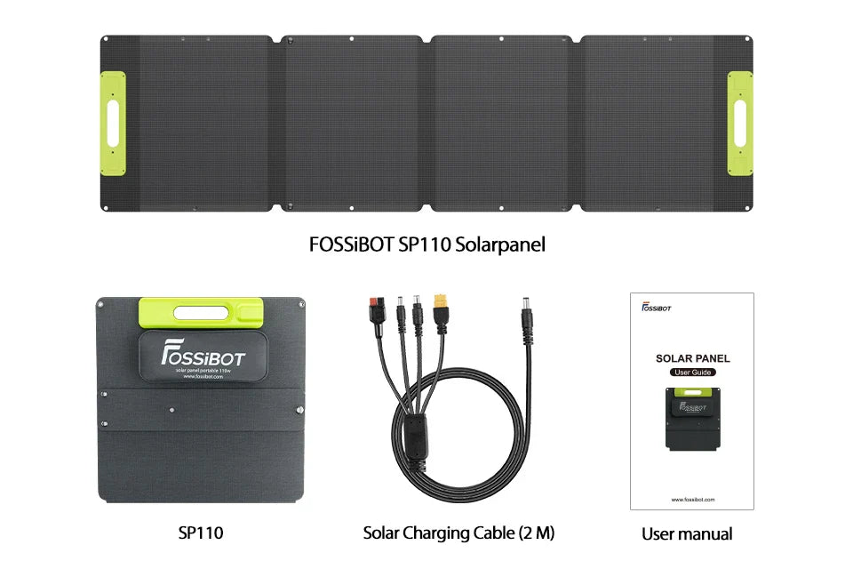 The SP110 will comes with a 4-in-1 cable, allowing you to charge FOSSiBOT F1200 and portable power stations with anderson, Anderson, DC7090, XT60 and DC5521 port.